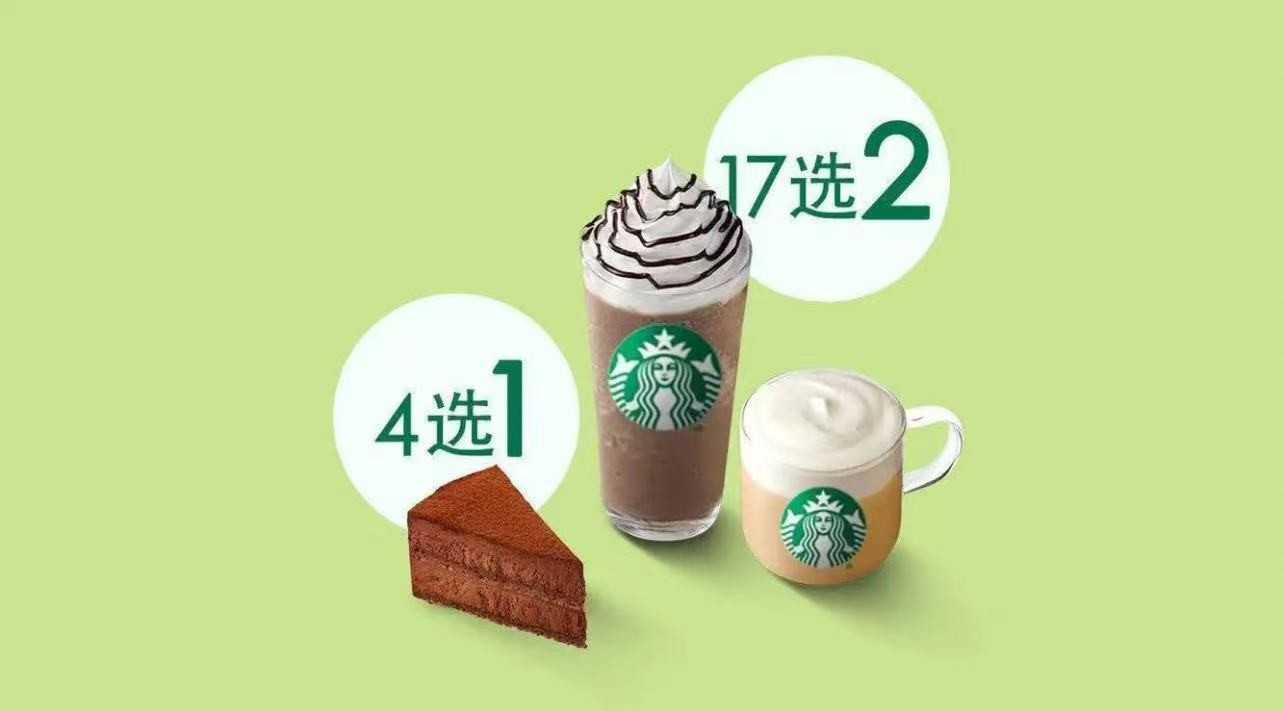 星巴克下午茶大杯饮品+1 块蛋糕